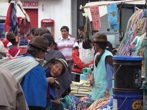 En raison d’une coulée de boue qui coupe la route d’accès à la laguna Quilotoa, nous changeons de programme et rejoignons Riobamba et Cajabamba pour leur jour de marché. Ces deux villes nous offrent un spectacle de toute beauté une fois de plus, en particulier la seconde, où se presse une foule descendue des montagnes voisines pour vendre ses marchandises, acheter le nécessaire et animer les ruelles de la ville. Nous errons parmis les gens, en riant ici d’un cochon qui couine solidement arimé sur le dos d’une vieille femme ou là d’un autre qui refuse d’avancer et se fait traîner sur les pavés.