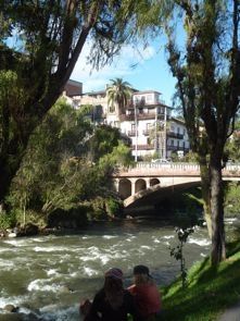 Voilà notre coup de cœur citadin depuis le début du voyage ! Incroyable. Nous qui n’aimons en général pas les villes, nous avons craqué pour cette grande petite ville. Où que l’on aille, tout est joli. Les rues sont pavées, les maisons pleines de charme, les églises poussent à chaque coin de rue sans opresser quiconque. La circulation y est vraiment supportable et l’animation existante. Où que l’on regarde, on découvre une jolie rue et à son extrémité, un dégagement sur la nature et les forêts environnantes. En contrebas de la vieille ville coulent quatre rivières. Nous en avons longé une avant de nous poser un après-midi dans un grand parc vert. Et puis, nous avons fait un petit tour du côté du musée de la culture arborigène.