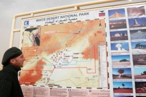 Après la pollution, le bruit, la pression et l’oppression vécue au Caire, la route des déserts nous a apporté un immense réconfort. D’une part, les routes sont de très bonne qualité, mais elles sont très variées. Nous avons traversé le désert noir qui doit sa couleur aux pierres volcaniques qui recouvrent la surface du sable. Puis Cristal Mountain, une colline couverte de quartz, malheureusement piétiné par les milliers de personnes pressées d’emporter un morceau.